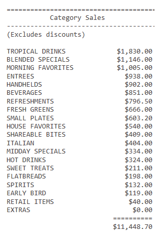 Added Total Covers, Average Per Guest, Average Order Value, Hourly Sales, Table Turnover, Top Selling Items, Payment Methods Mix, Server Performance and Category Sales sub-reports for end of day report.