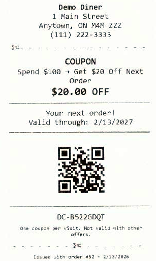 Add the option to set discount triggers so that coupons are automatically printed upon order settlement when the trigger's conditions are met. Click the help link for instructions.