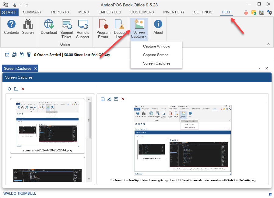 Added the option to create screenshots in back office and the pos and optionally send the images to the support staff.