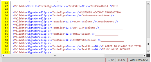 Added <Validate=SignatureSlip /> validation tag so that customer account transaction signature lines are printed at the bottom of the customer receipt