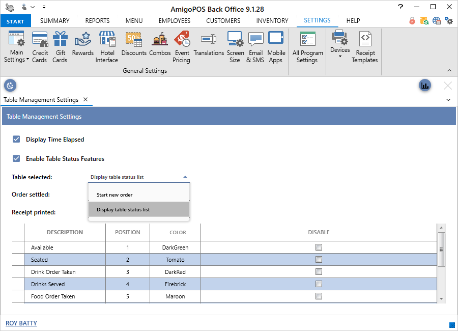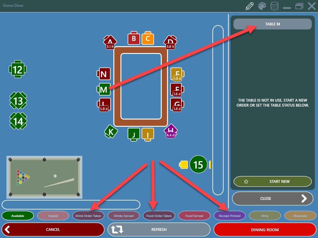 Added the option to change the table status instead of automatically starting a new order when an open table is selected