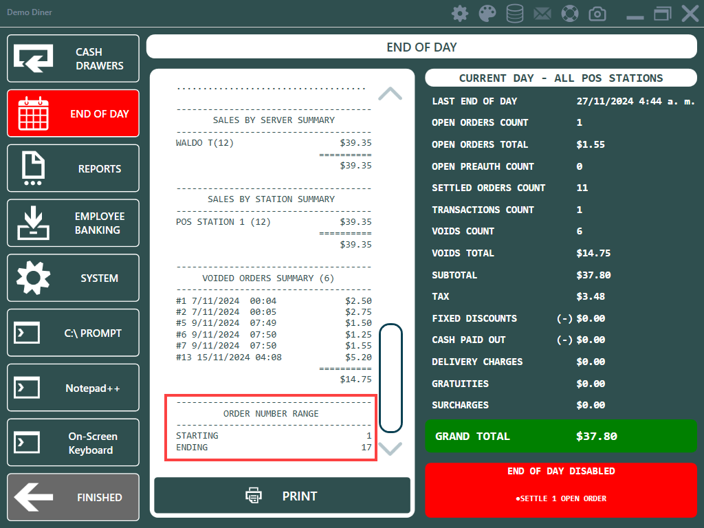 Added revenue center details subreport to end of day report. The subreport can be enabled in back office | settings | main settings | manager screen | end of day.