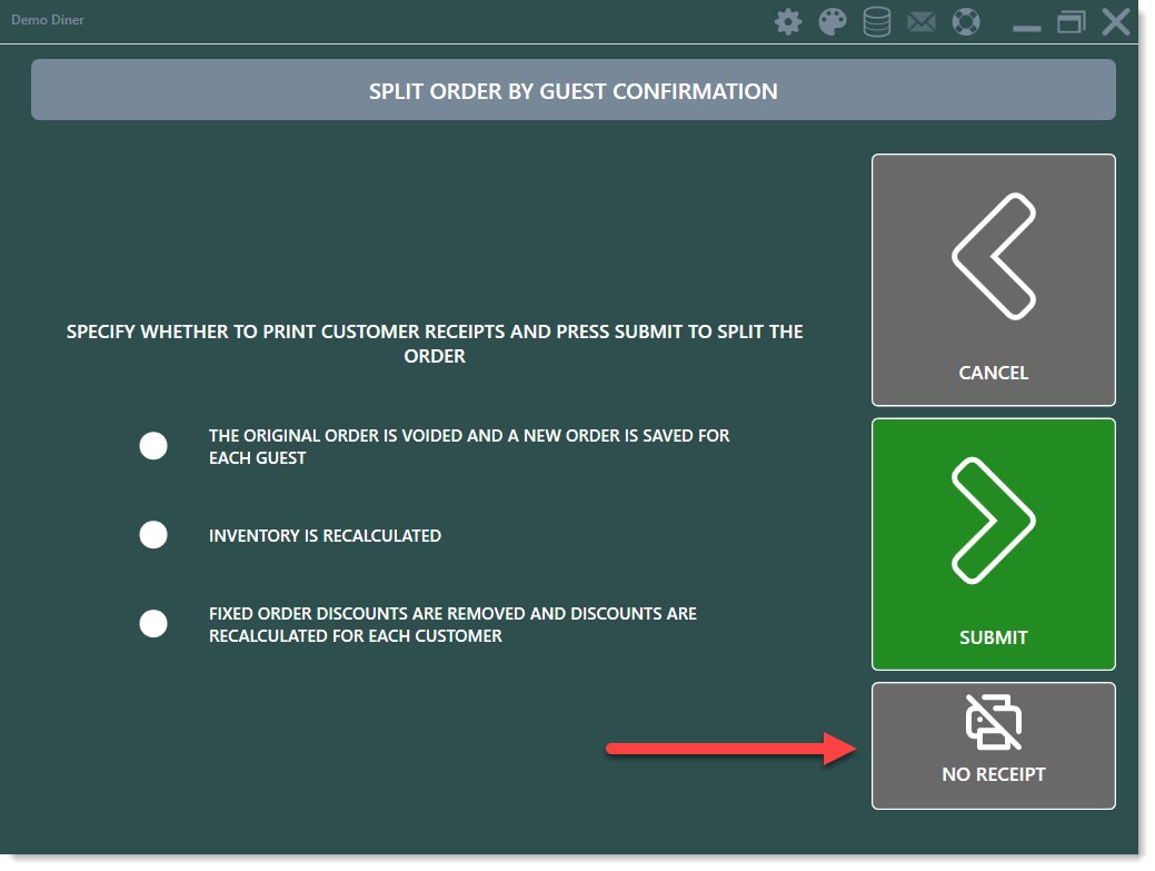 Added the option to suppress automatic customer receipt printing when splitting orders