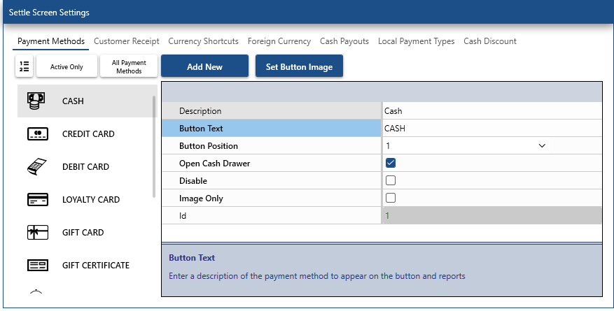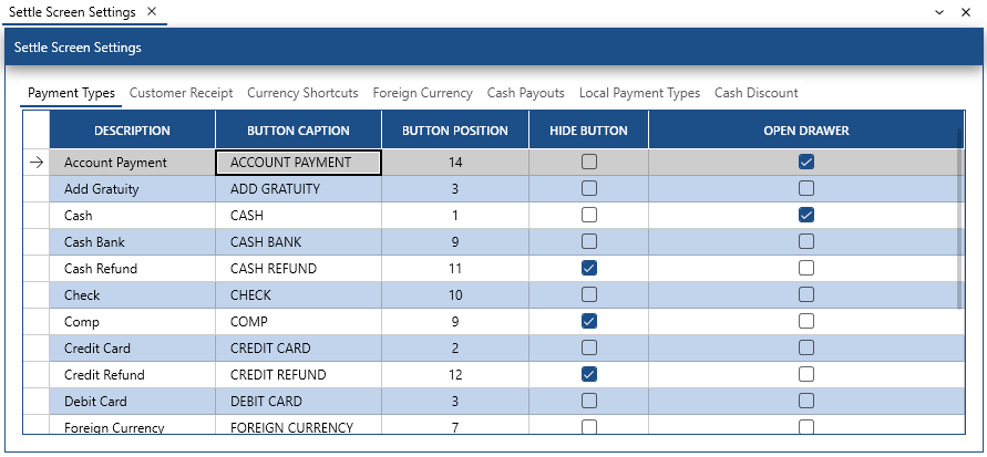 Fixed issue where payment methods are not displayed correctly in back office | settings | main settings | settle screen