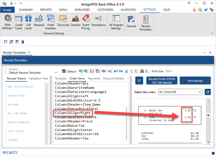 Added the option to display the price at the bottom of order entry screen menu item and modifier buttons