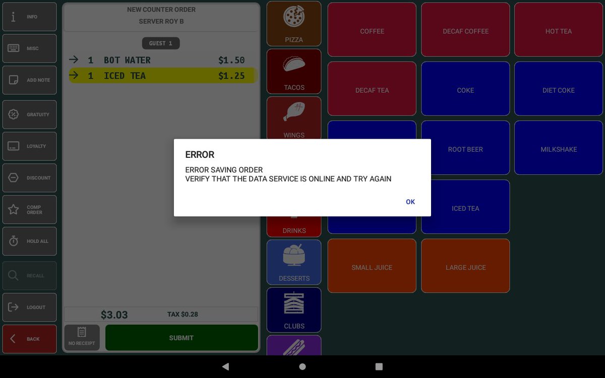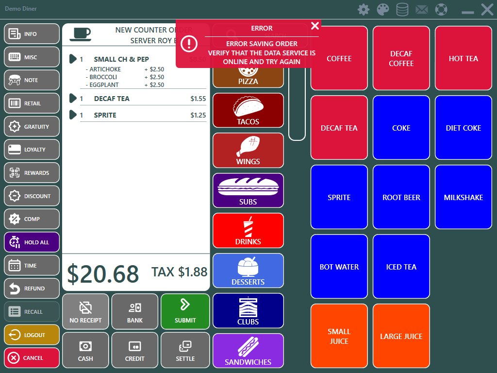 Added prompt to inform the user if the data service is offline when submitting an order