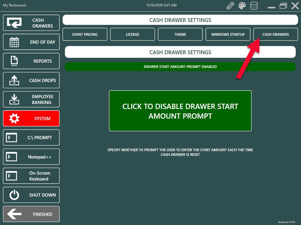 Added manager screen system setting to enable/disable drawer start amount prompt