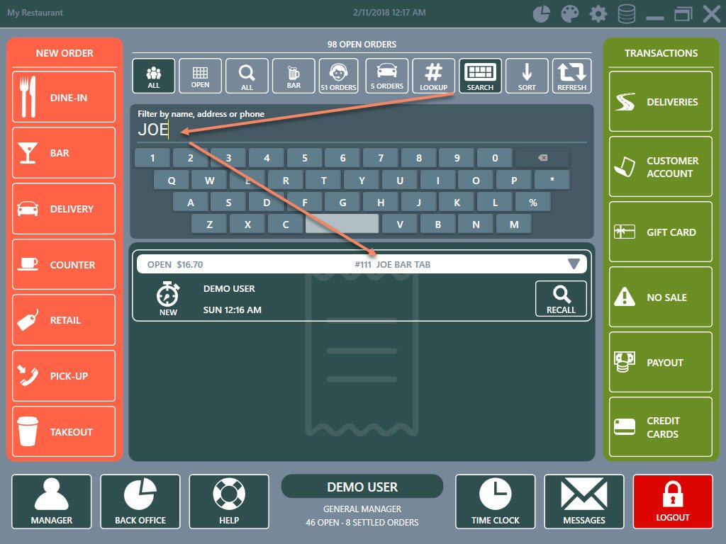 Added the option to filter the order recall list by name, address, phone or bar tab name