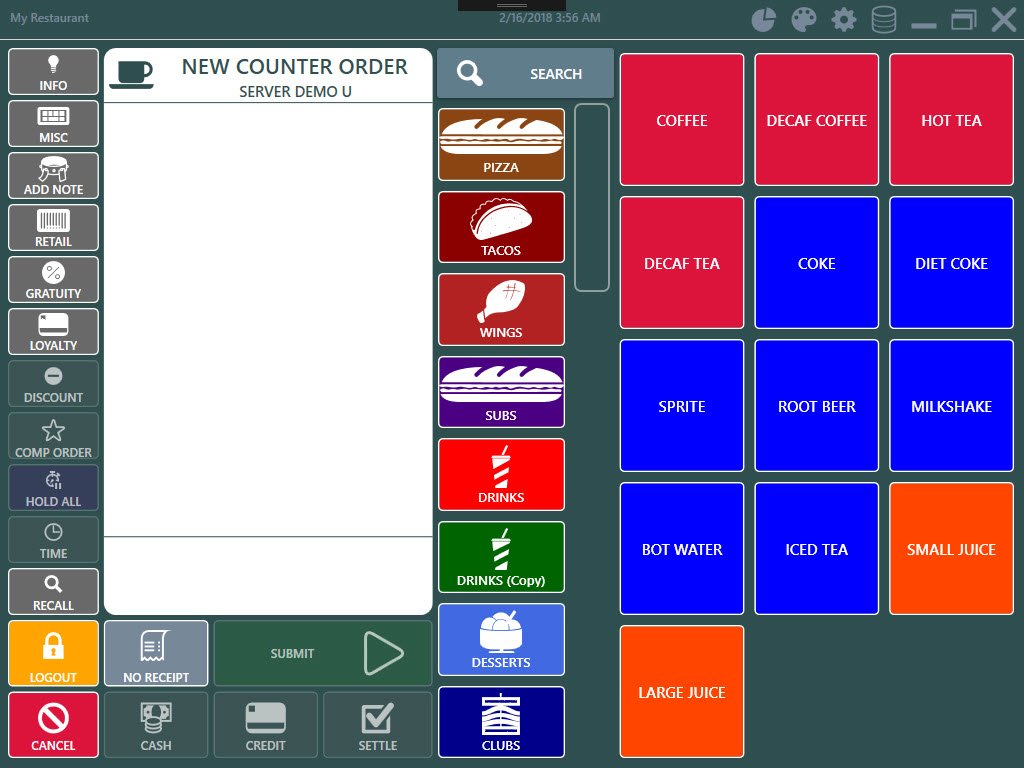 Added order entry screen search button to quickly filter the regular and bar menus by item name
