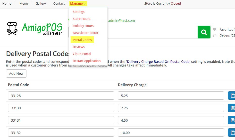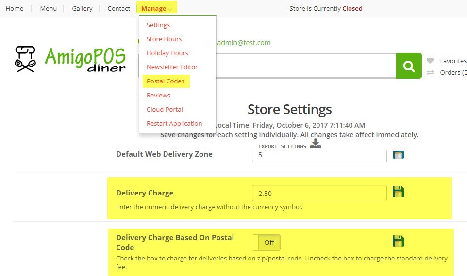 Added online ordering option to calculate the delivery charge based on zip/postal code.