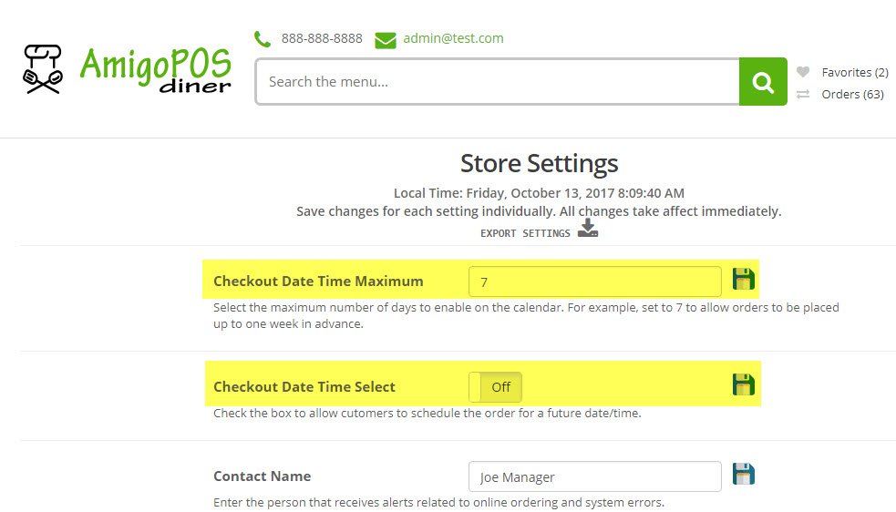 Added online ordering option to allow the customer to schedule the order for a different date/time during checkout.