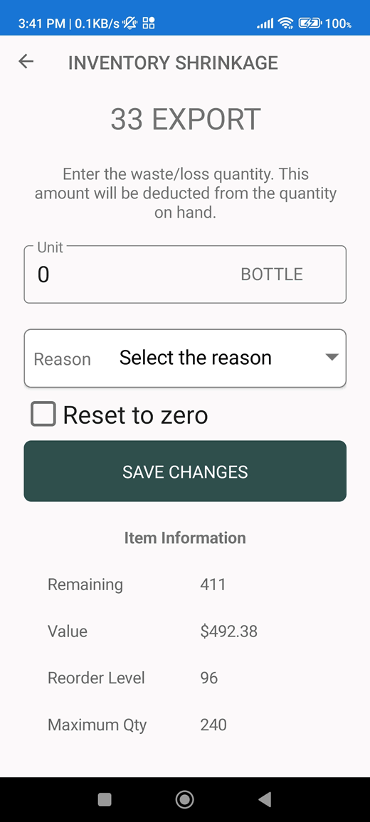 Added dedicated inventory shrinkage screens to back office and the Android pos app so that a physical inventory count is no longer required to enter inventory waste, loss, breakage.