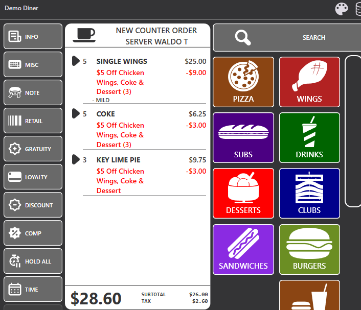 Improved multi-part discount scenarios to support advanced scenarios such as mixing menu categories with menu items, multiple menu categories and menu items, maximum times per order and other updates described in the help topic.