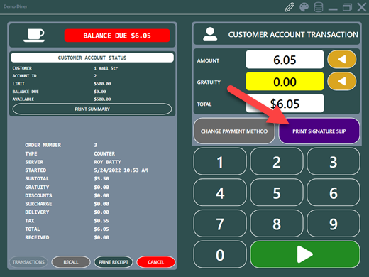 Added <Validate=SignatureSlip /> validation tag so that customer account transaction signature lines are printed at the bottom of the customer receipt