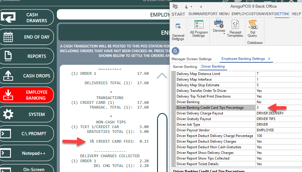 Added option to deduct processing fee from credit card tips owed to driver on driver liability report