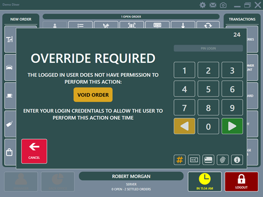 Added permission overrides so that users with insufficient permissions to perform some tasks can request a one time override from a user with valid permissions. Click the help topic link for additional details.