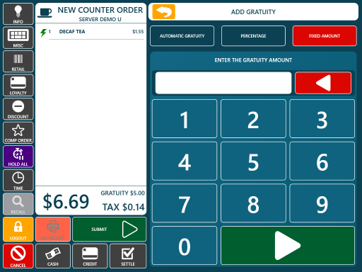 Added the option to enter a fixed gratuity amount (instead of percentage) on the order entry screen