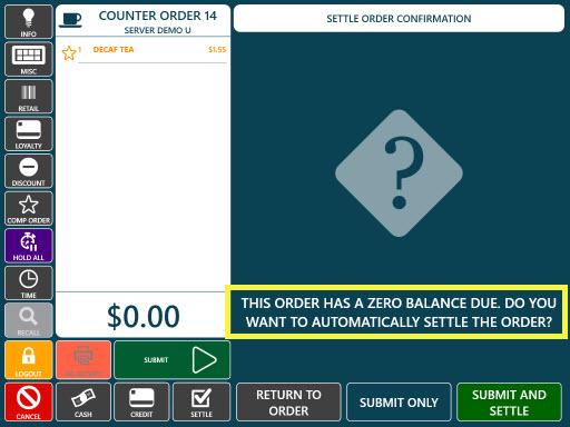 User is prompted to settle a zero total order when pressing the submit button on the order entry screen http://t.co/NU3jfYyVBx