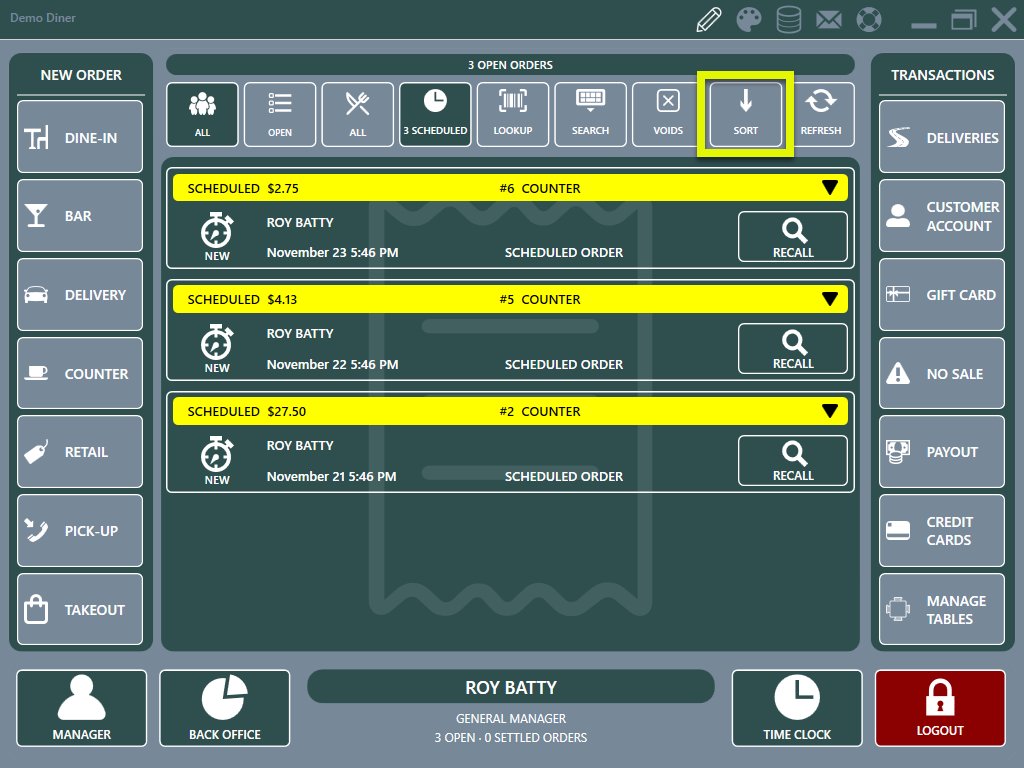 Recall list sort order button now sorts by scheduled date time when viewing scheduled orders