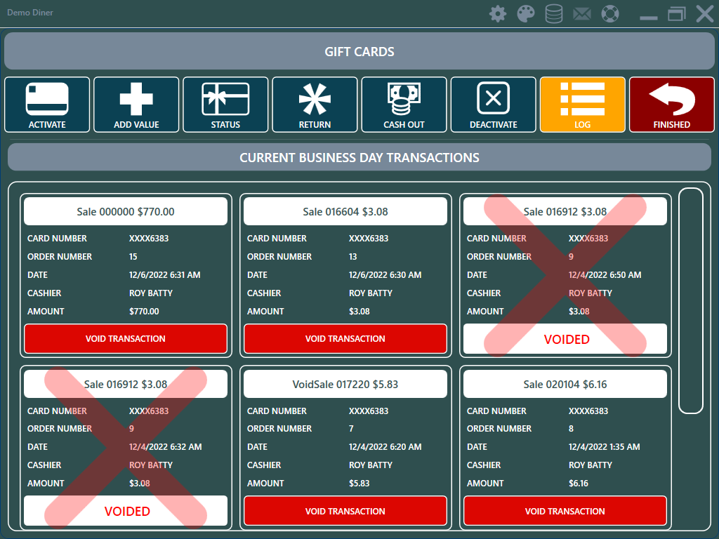 Added Datacap GIFTePay transaction log to the pos gift cards screen so that gift card void reload and void return transactions can be processed directly from the pos