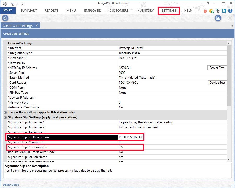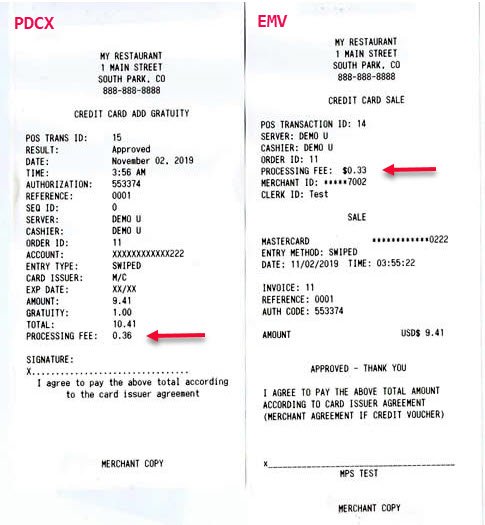 Added the option to display the credit card processing fee on the signature slip. This setting should be enabled only for merchant accounts where the fee is automatically added to the transaction amount by the payment processor.