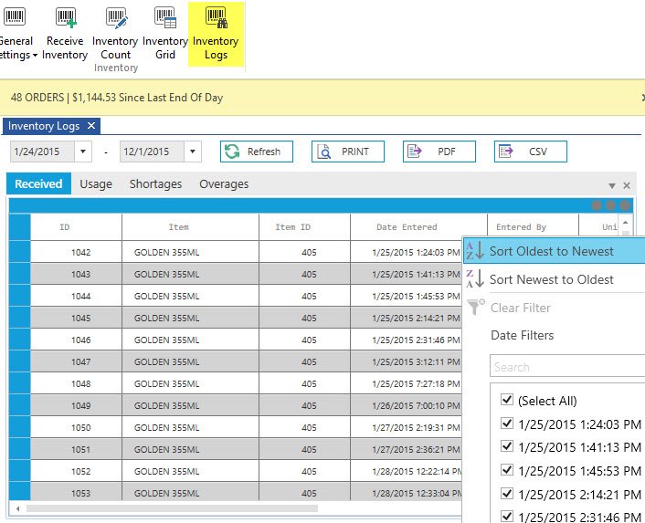 Added sort and filter icons to inventory log grid column headers https://t.co/ey4og53xQU