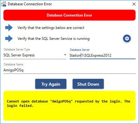 Added database connection error dialog to data service application for troubleshooting database connection errors
