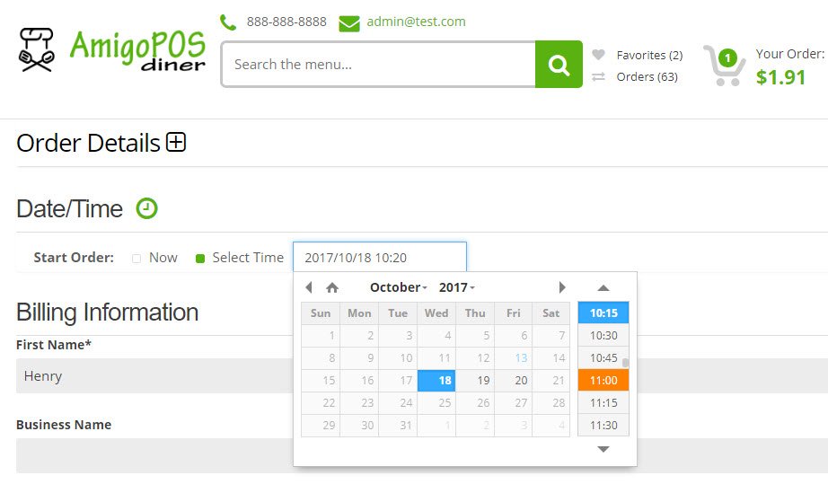 Added online ordering option to allow the customer to schedule the order for a different date/time during checkout.